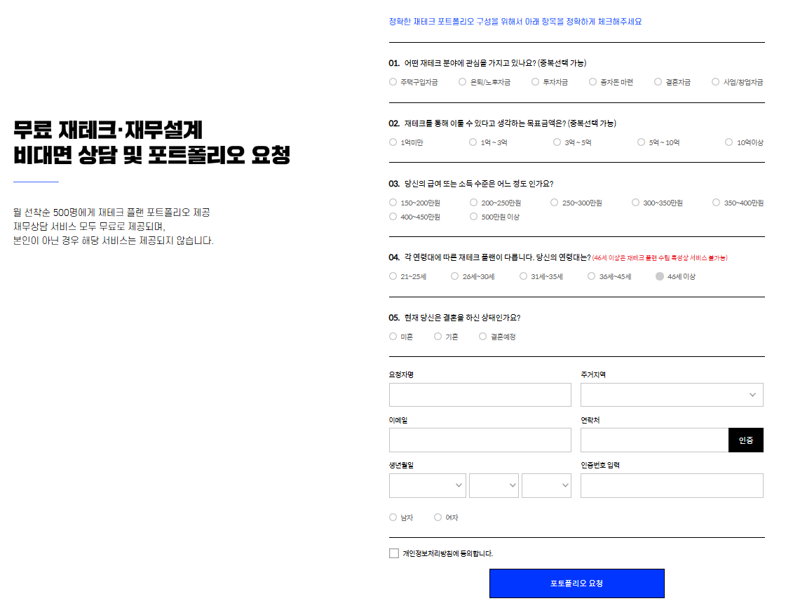재테크, 재무설계 상담 및 포트폴리오 항목