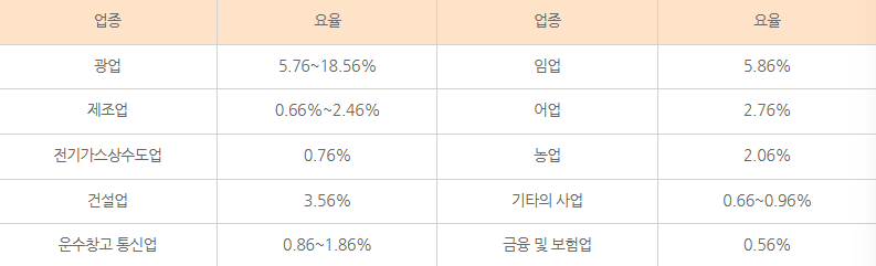 - 업종별 요율 별도 적용